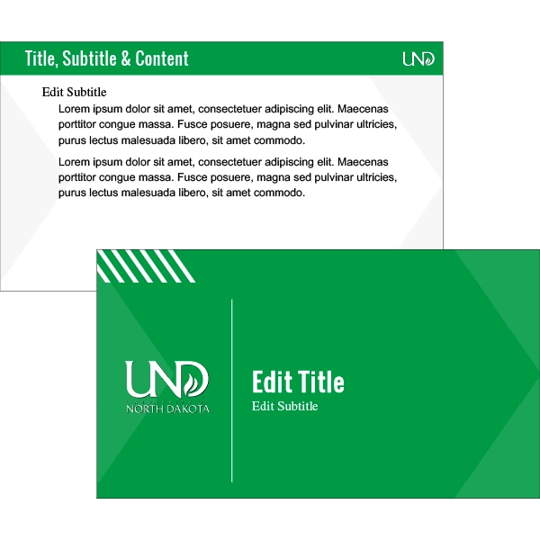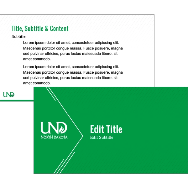 UND offers PowerPoint templates in two brand tones - Core and Vibrant. Each template's unique design helps you choose the tone that best suits your audience and communication goals.