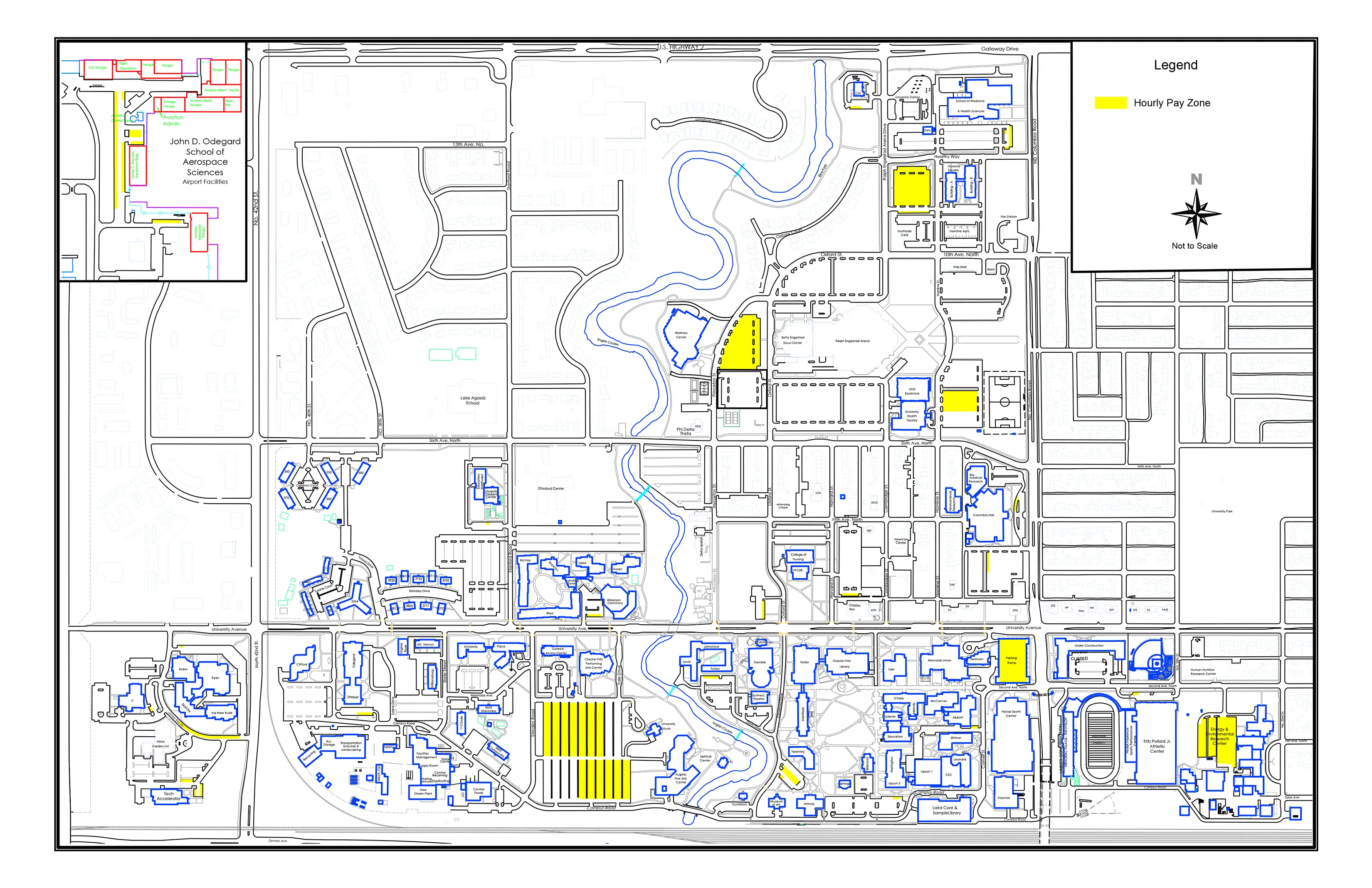 The UND Parking Ramp is located at the intersection of University Avenue and Columbia Road. The ramp provides convenient parking for students, employees and visitors to the east side of the campus.